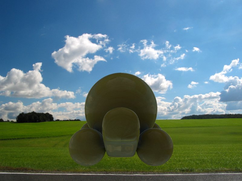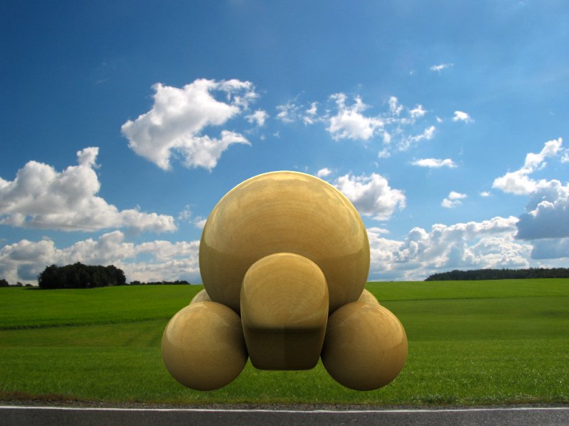 | another example, different backdrop, different hdri, same scene. it's very easy to create different moods and to compine this with different backgrounds. the rendering is really fast, just some minutes at 800x600 and enhanced antialiasing on my good old dual celeron 533. |